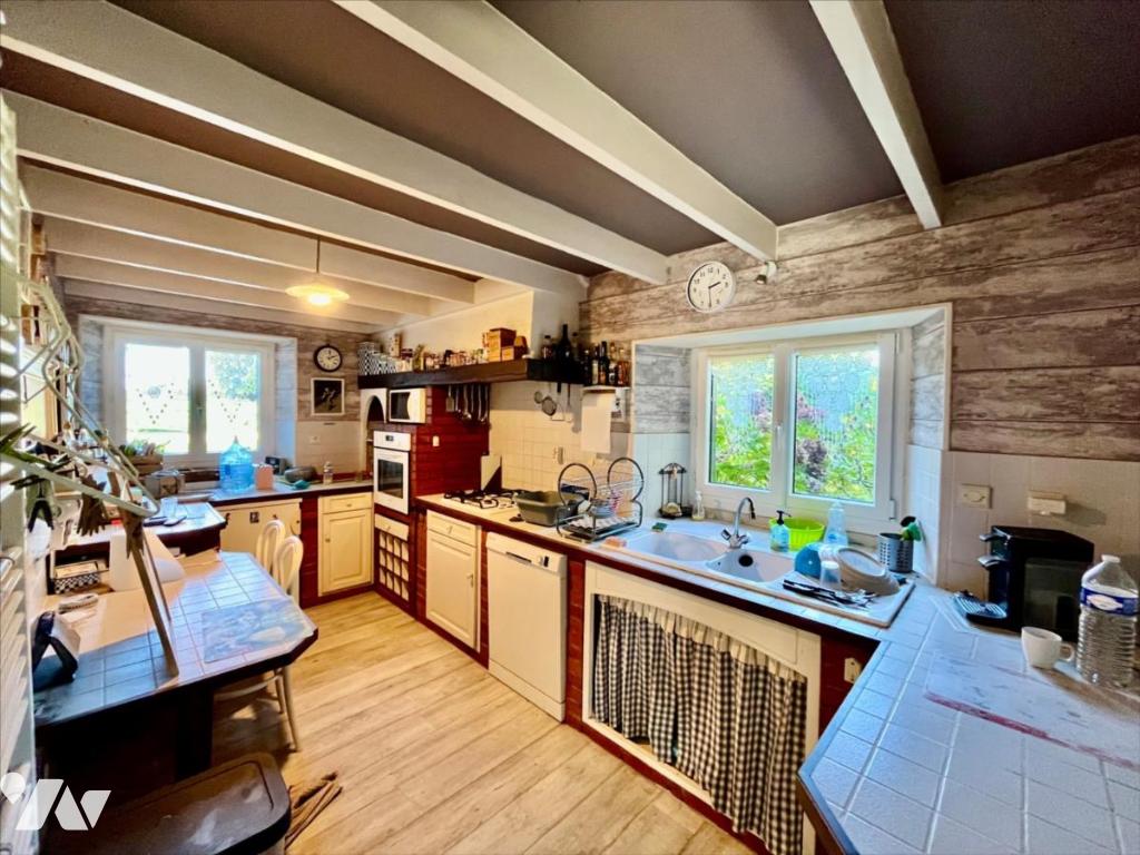 Comprenant au rez-de-chaussée: Un hall d'entrée avec placard, WC, salon-salle à manger avec poêle à bois, une cuisine, arrière cuisine, salle d'eau et véranda.