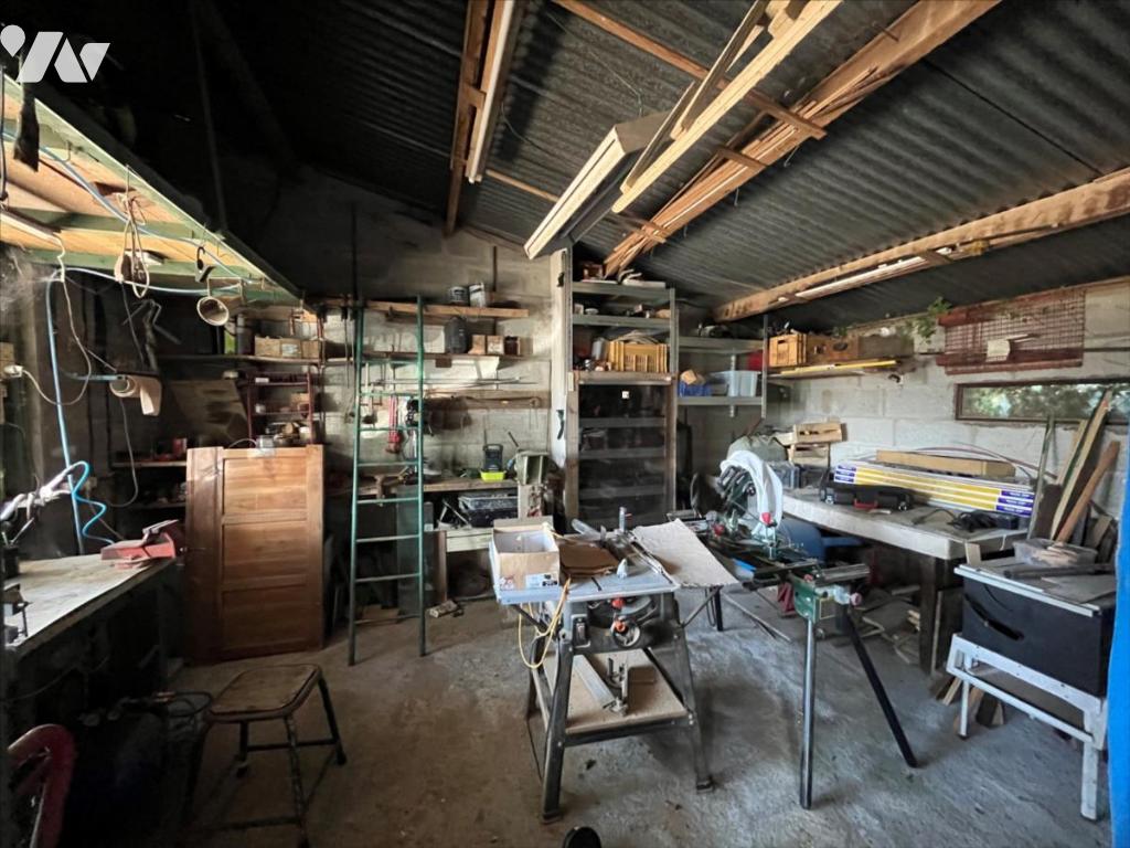 A l'est, un double garage et un atelier construit en parpaing et couvert en bac acier.Puits.